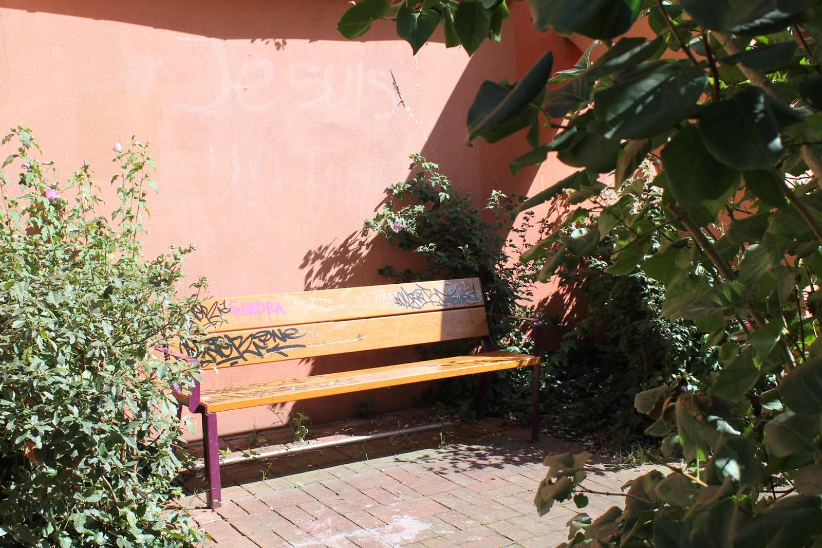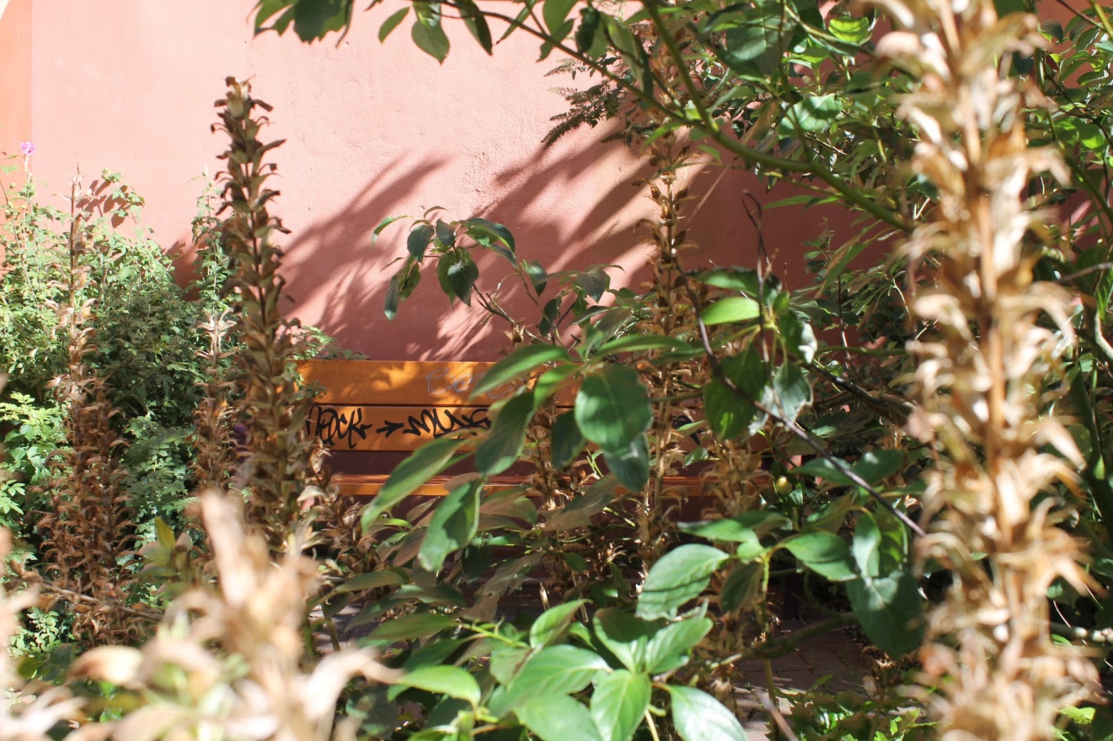 It’s maybe as big as two rooms, filled with overgrowing greens and a few benches decorated with graffiti. Some of the paths you can’t even see and looking closer you’ll find little treasures like flowers to take home (yes, I admit it, I’m a flower thief!) and snails relaxing on the leaves of a bush.