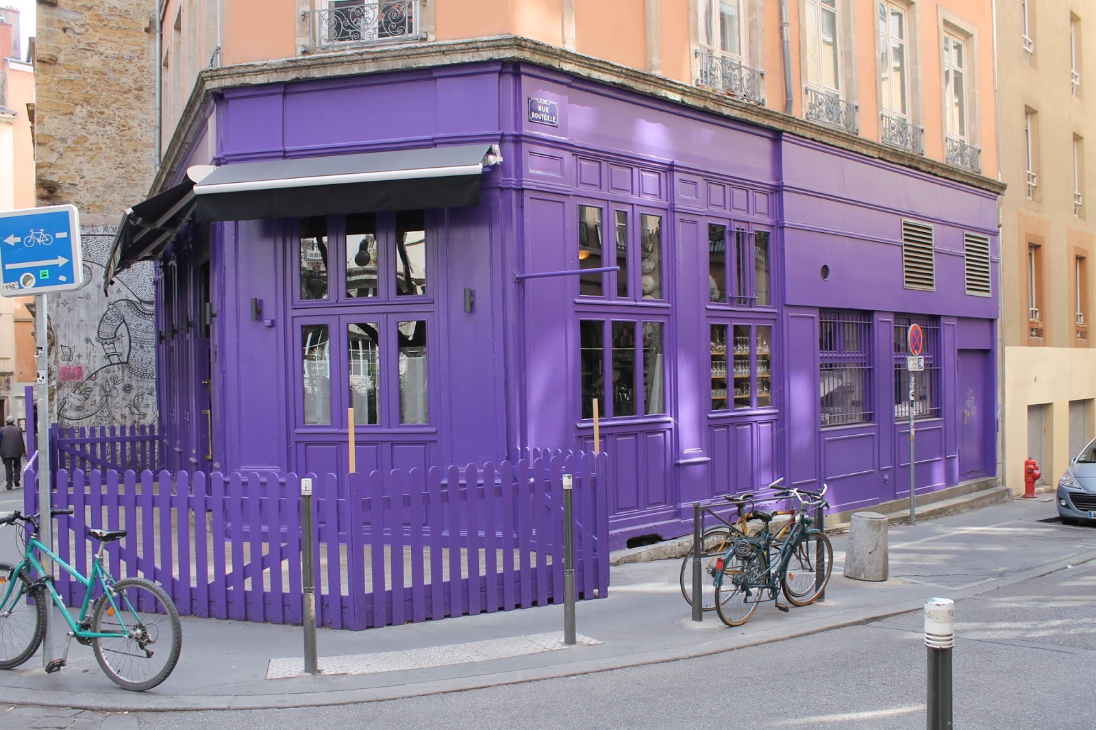 - A purple restaurant/bar. Not quite sure which. It is purple.