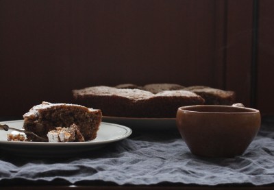 Ever since I saw these pretty pear cakes pop up on Instagram, I wanted to make one too. I bought four pears. And then I made brownies. And cinnamon buns. And I could not possibly make another cake. A week went by, two pears were gone. But I still had the other two sitting there on the kitchen table, so rather late one night I decided to make the cake. Usually, I am a chocolate-and-nothing-but-chocolate kind of person, but recently I am craving more vibrant and fruity foods… Must be the winter blues. Because my mum has sent me a huge amount of walnuts, and because I thought walnuts and pears would go quite nicely together, a pear and walnut cake it was. It is so moist and rich and fruity and utterly delicious, and you should go make one right now.